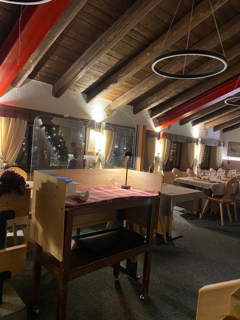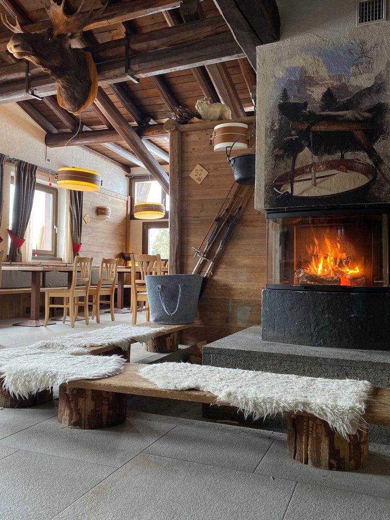Wnętrze ma przytulny, alpejski klimat z drewnem i panoramicznymi oknami; na większe grupy dostępna jest pobliska, prywatna „Casina del Furmai”. Warto zarezerwować stolik.